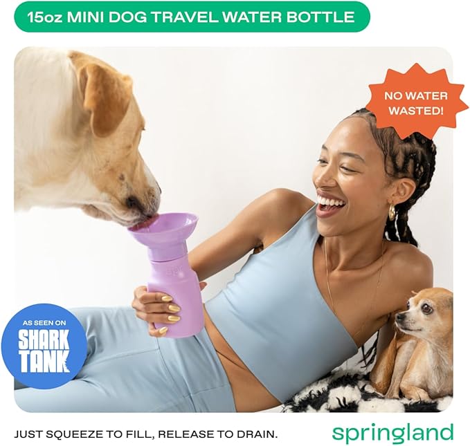 Springer by Springland Dog Water Bottle | Portable Travel Water Bottle Dispenser for Dogs | Dog Gift Seen on Oprah's Favorite Things, Shark Tank | Leak-Proof Bottles | BPA-Free 15oz Lilac