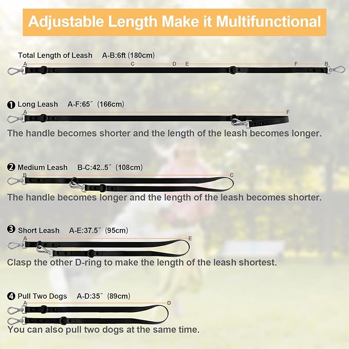 Wisedog Waterproof Dog Leash – 5ft/6ft Adjustable with 2 Hooks & Traffic Handle, Easy to Clean Double Clip Leash for Small, Medium, Large Dogs (Black L)