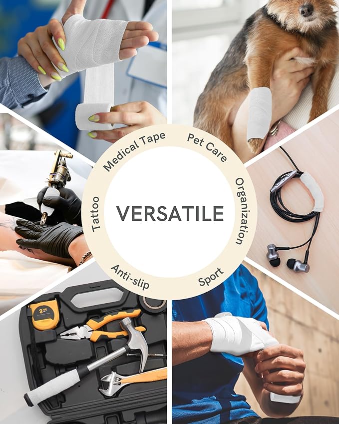 FriCARE Self Adhesive Bandage Wrap, Medical Tape in First Aid Kit, Cohesive Bandages for Wounds Sport Vet, 2 Inches X 5 Yards 6 Rolls, White