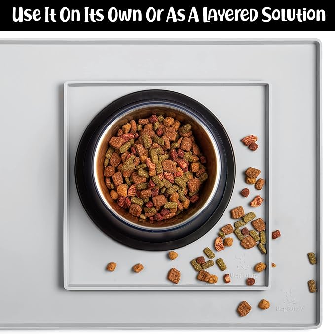 - Less Mess & Less Stress: Super high edge (0.6”) of DogBuddy Dog Food Mat keeps the spilled food and water on the mat and away from your beautiful floor. Silicone is naturally 100% waterproof, so what happens on the mat stays on the mat.