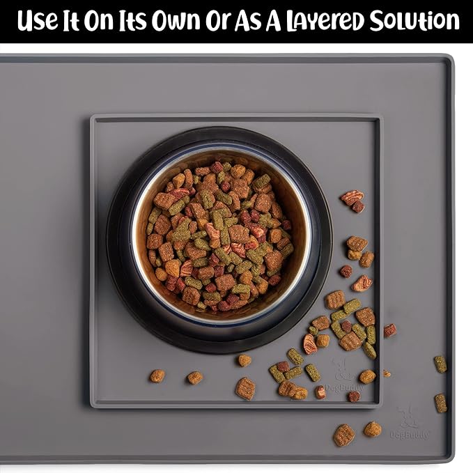 - Less Mess & Less Stress: Super high edge (0.6”) of DogBuddy Dog Food Mat keeps the spilled food and water on the mat and away from your beautiful floor. Silicone is naturally 100% waterproof, so what happens on the mat stays on the mat.