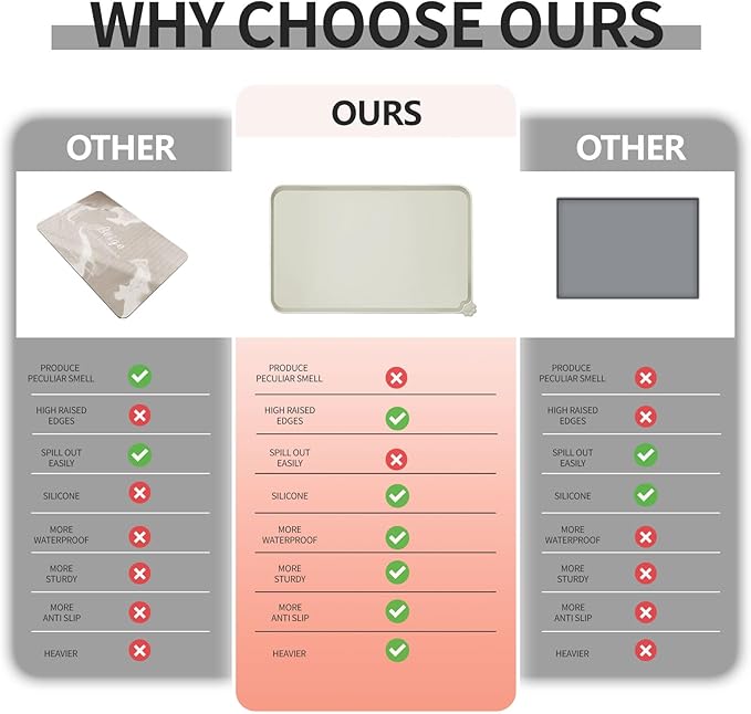 - Anti-slip design: our non-slip pet feeding mat ensures stability for your pet's bowl, preventing any water stains or spills on the floor. Enjoy peace of mind when feeding your pet, knowing that their food stays in place