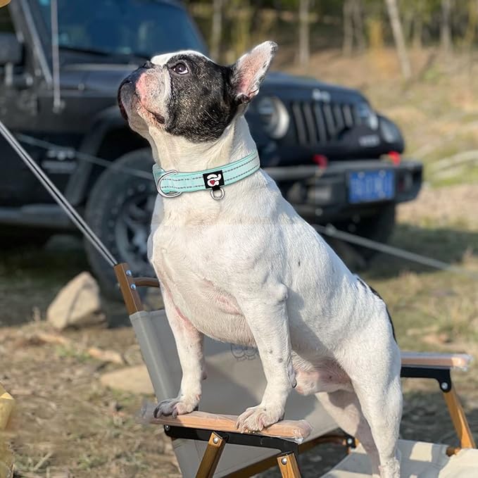 azuza Reflective Dog Collar,Soft Neoprene Padded Pet Collar with ID Tag Ring,Adjustable for Medium Dogs,Teal,M