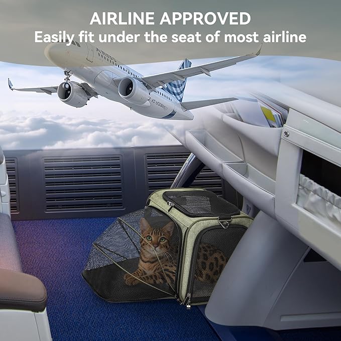 - 【COMFORTABLE SPACE】Extra extended space enable pets sprawl out, lay, see all around and relax when you have a flight trip, also works great in the car, roomy and they lay in it like a bed. Carrier can be folded totally flat when not in use