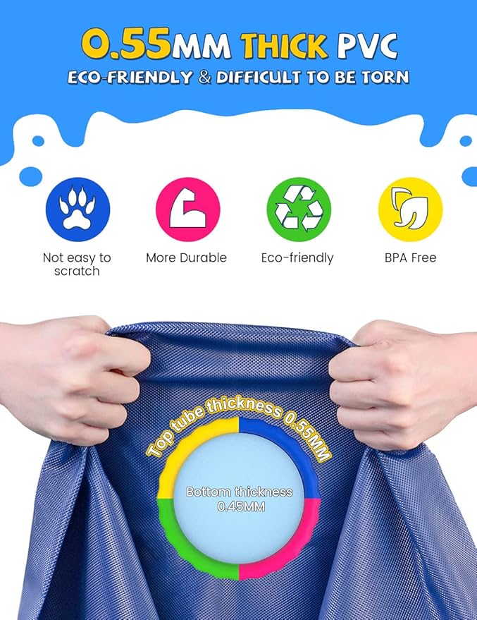 - MORE THICKER MORE DURABLE: The dog splash pad is 0.55 mm thick, more durable than 0.25 mm pads, allowing pets and children to play without damage. Tip: Trim pets' nails before use