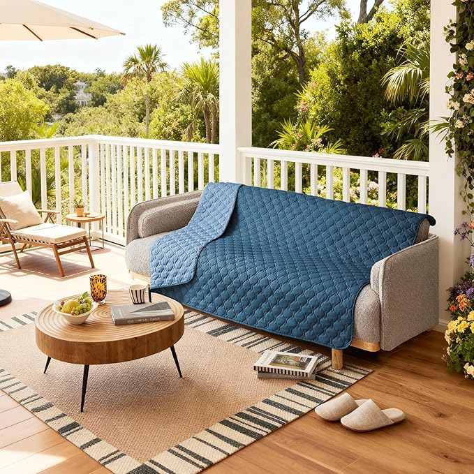 gogobunny 100% Double-Sided Waterproof Dog Bed Cover Pet Blanket Sofa Couch Furniture Protector for Puppy Large Dog Cat, Reversible (68x82 Inch (Pack of 1), Dark Blue/Light Blue)