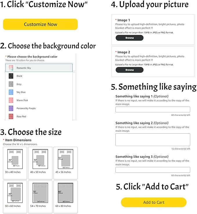 - 💕Customized Blanket: Size and Color: This custom blanket is available in six sizes, 30"x40"(Baby blanket), 40"x50"(Child blanket/Teen blanket), 50"x60"(Adult blanket), 54"x70"(Sofa blanket/Bed Blanket) and 60"x80"(Sofa blanket/Bed Blanket). Imagine the moment they opens the pack and realizes this is a perfect gift for them!