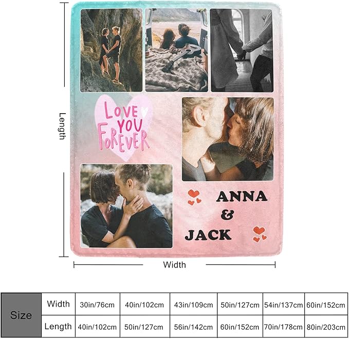 - 💕Customized Blanket: Size and Color: This custom blanket is available in six sizes, 30"x40"(Baby blanket), 40"x50"(Child blanket/Teen blanket), 50"x60"(Adult blanket), 54"x70"(Sofa blanket/Bed Blanket) and 60"x80"(Sofa blanket/Bed Blanket). Imagine the moment they opens the pack and realizes this is a perfect gift for them!