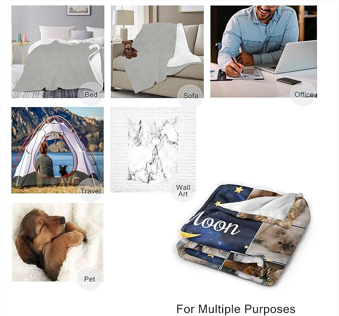 - 💕Custom Blanket: Personalized unique customized photo blanket with your favorite photos. Turn your favorites pictures come to life with one-of-a-kind photo blankets. Soft, thick fleece is perfect for cuddling on the couch, sofa or bed, picnicking at the park, or snuggling while you watch the kids play soccer.