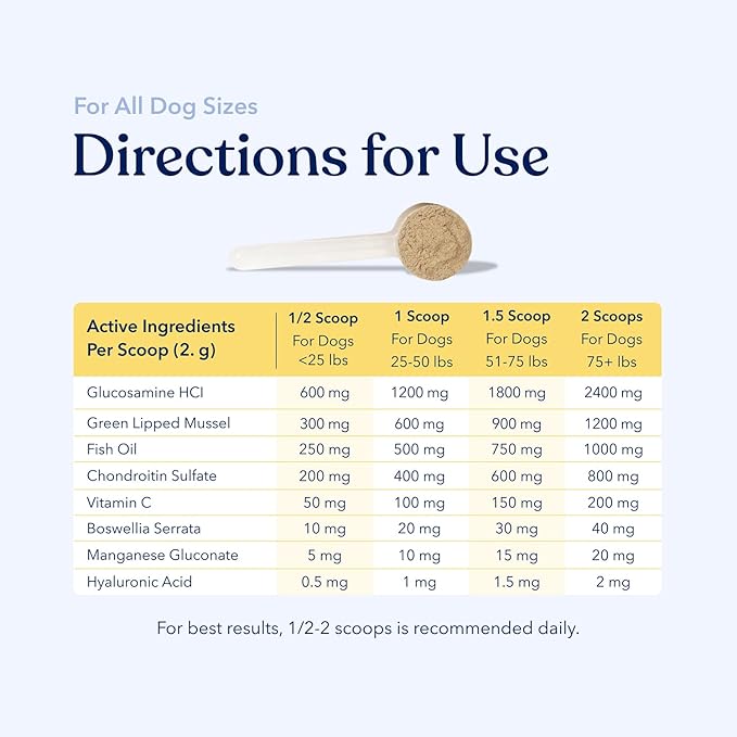 Honest Paws Glucosamine for Dogs – Joint & Mobility Supplement Powder with Green Lipped Mussel, Fish Oil & MSM – Supports Hip & Joint Health, Support Stiffness, Dog Supplies