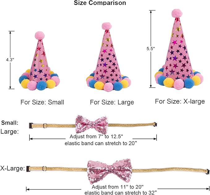- dog birthday hat is made of pressure-resistant material and colorful Pom Poms. The hat is elastic and easy to put on.