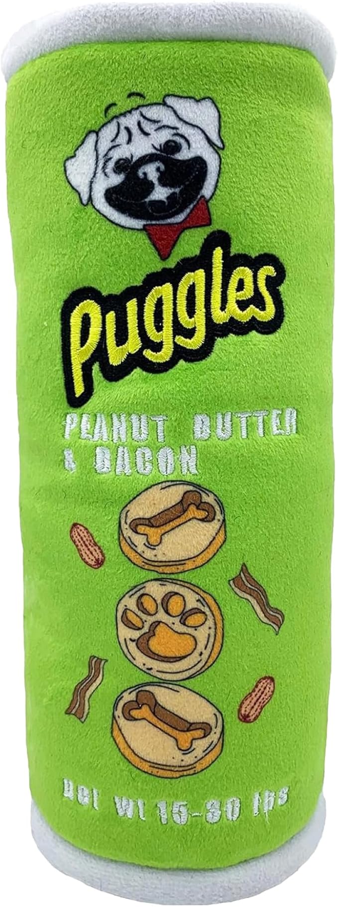 Huxley & Kent Funny Dog Toy w/Squeaker – Power Plush Squeaky Dog Toys for Small, Medium & Large Dogs – Soft Stuffed Animal for Indoor Play & Fetch - Puggles Can, Large