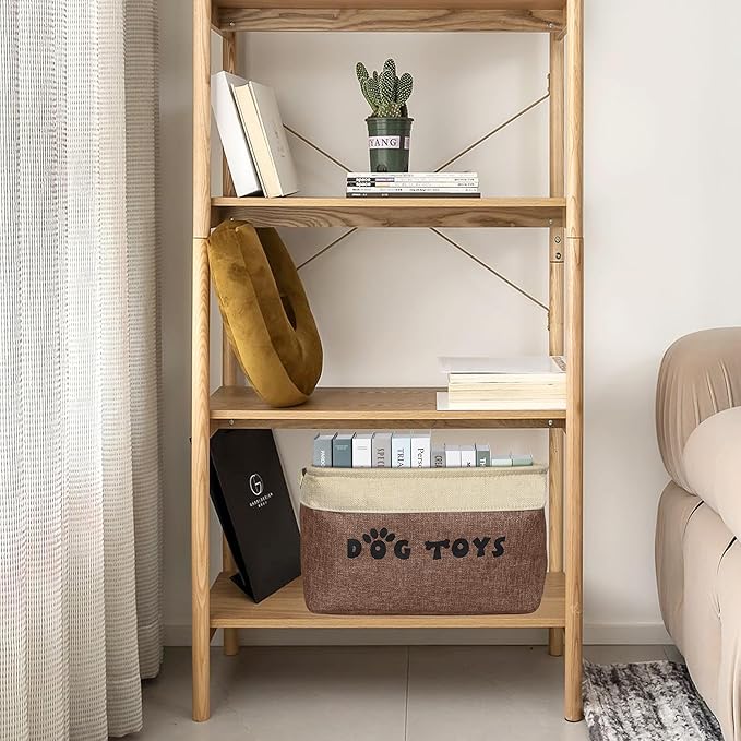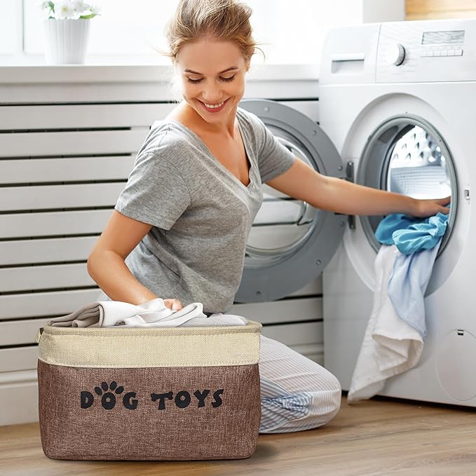 PET ARTIST Dog Toy Basket, Collapsible Dog Toy Bin Box with Comfortable Handles, Large Pet Toy Storage Organizer for Accessories, Toys, Coat & Clothing, Blanket & Leash, Brown, 15"x11"x9"