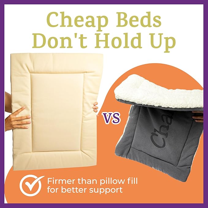 - ๐๐ซ๐๐ฆ๐ข๐ฎ๐ฆ ๐๐ฎ๐๐ฅ๐ข๐ญ๐ฒ ๐๐ซ๐ฎ๐ฌ๐ญ๐๐ ๐๐ข๐ง๐๐ ๐๐๐๐: Our Crate Pads are made for Unlimited Washes! Unlike pillow-filled beds, our special WashSafe fill wonโt bunch up or become lumpy. We only use premium fabrics that don't pill, shed, or mat so they look new for years. Note: Not recommended for chewers, but safe if they do.