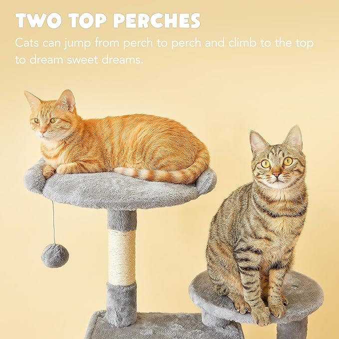 - 【PEACE IN MULTI-CAT HOUSEHOLD 】-Provides adequate space for 2-3 medium/large cats to use without starting a fight. Include 2 spacious condos,2 soft top perches,2 hanging toys with bell,1 large hammock and 6 sisal scratching posts.