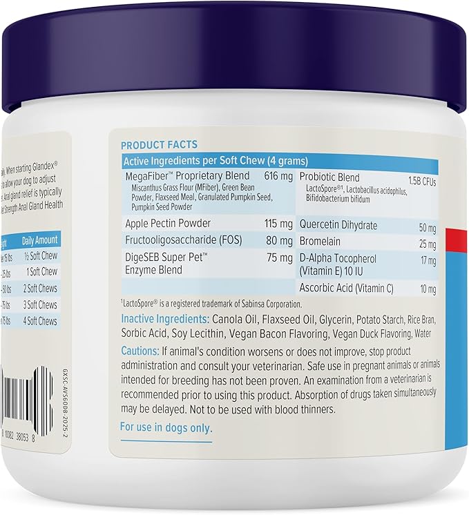 - VET STRENGTH ANAL GLAND & DIGESTIVE SUPPORT: Glandex for dogs is scientifically formulated to support healhy anal glands with Fiber, Probiotics, and more to promote digestive health and to bulk and firm dog stools.