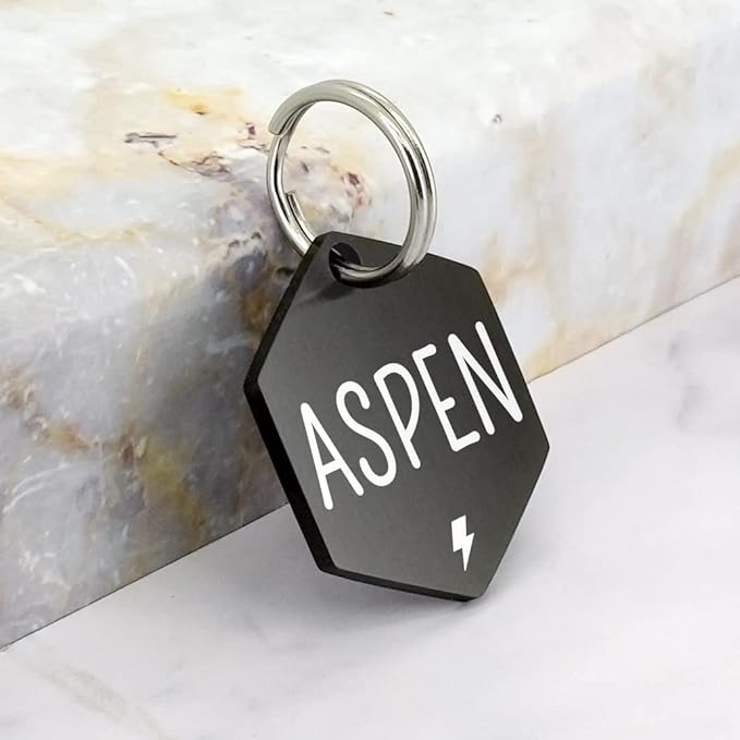 Ultra Joys Personalized Custom Dog ID Tag - Brushed Stainless Steel Hexagon, Black, Small