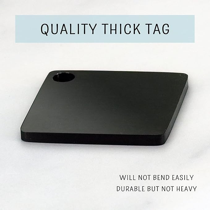 - These tags are made of premium quality stainless steel with brushed finish. Stainless steel is resistant to rust and is ideal for long-lasting tags.