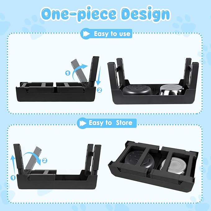 - EASY TO USE & STORE: Featured with an innovative one-piece design, the dog bowl with stand can be adjusted to different heights by only adjusting the button. In addition, the foldable legs provide easy storage and portability