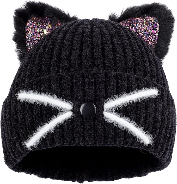 - 【Cute Glitter Cat Ears Hats】Each kids' ski winter hat is designed with super cute glitter faux fur cat ears, making your child so fashionable and lovely. Good winter accessory to throw on with everyday outfits and can add a pop of style and fun to any of your child's winter coats.