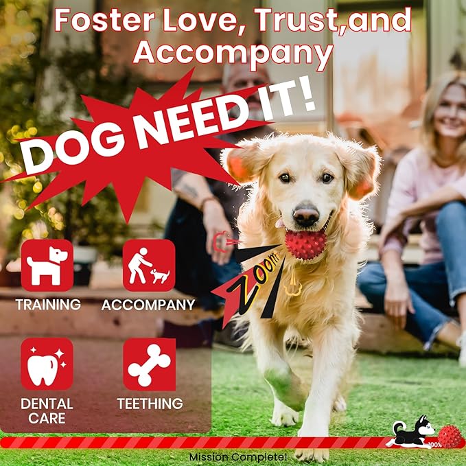 - VIVID & FUNNY BALL: Whether your dog enjoys playing with you or alone time playing with a toy, this specially designed versatile spikey squeaker toy is the perfect solution for all types of play. The highly vivid color is ideal for engaging with your dog day or night, tough. Suitable to play with in the yard, home, park, or shore.