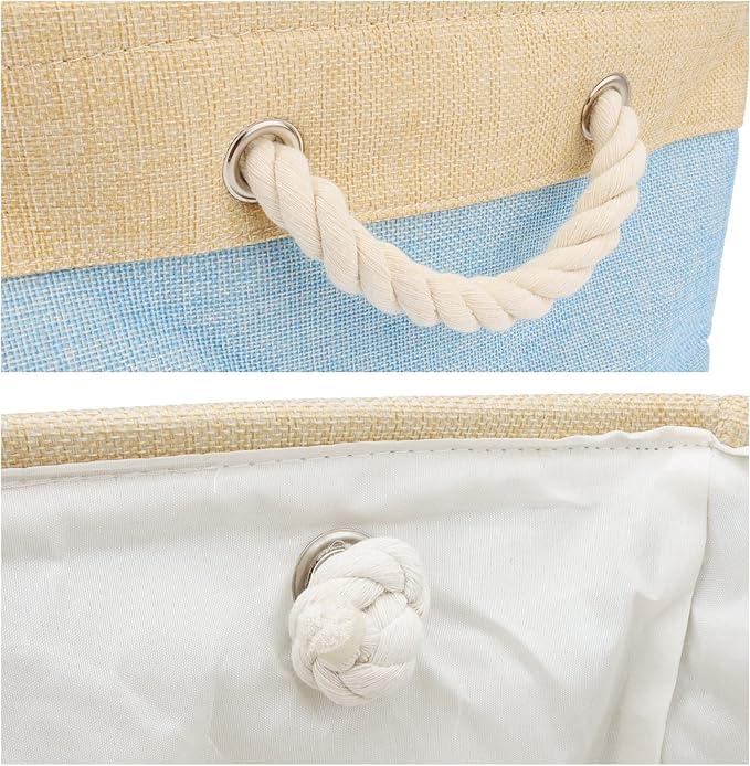 - Material: These dog toy baskets are made of durable linen and thickened EVA, with a polyester inner lining that is soft to the touch, tightly stitched, and structurally stable.sturdy cotton rope handle design, make it easy to transport or move when needed