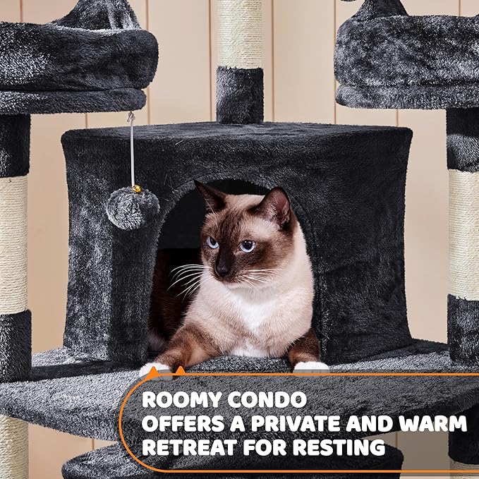 Yaheetech 68.5in Cat Tree for Large Cats, Multi-Level Cat Tower with 3 Wide Perches, Large Condo, Stable Pet Play House w/Sisal-Covered Scratching Posts & Board, Black