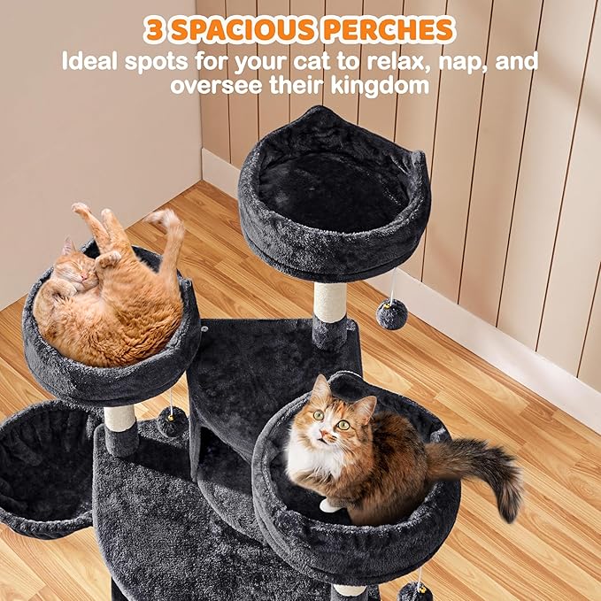 - Pet-friendly Materials: Crafted from CARB P2-compliant particle board, soft plush, and natural sisal rope, this cat tree provides a safe and comfortable activity center. It satisfies your cat’s natural scratching instincts while offering ideal spots for climbing and resting