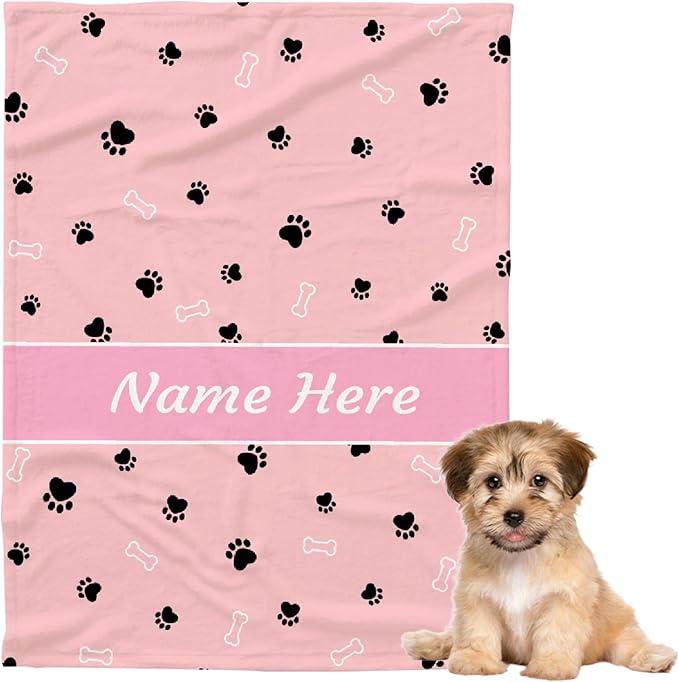 Custom Pet Name Blanket Personalized Dogs Customized Puppy ,Dog Gift for Dog Lovers Mom Dad Cute Paw Prints Soft Flannel Throw Bed Sofa Travel Extra Small 40''x30'' Pink Dog Paw Print
