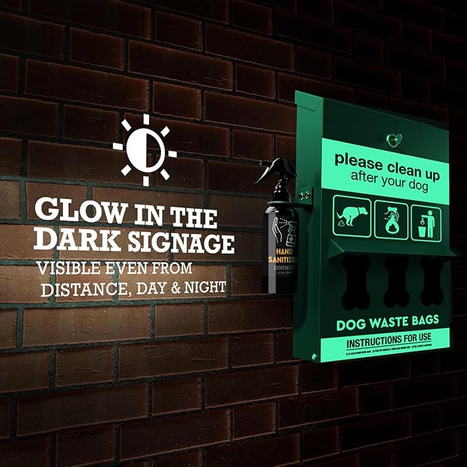- ✅ 2024 New Improved Design: Our dog poop station outdoor offers more for less, unique heavy duty model of the best quality, made of powder-coated galvanized steel will not rust or fade unlike steel station dog, glow in the dark and hold 11.5 gallon capacity, will have years of use!