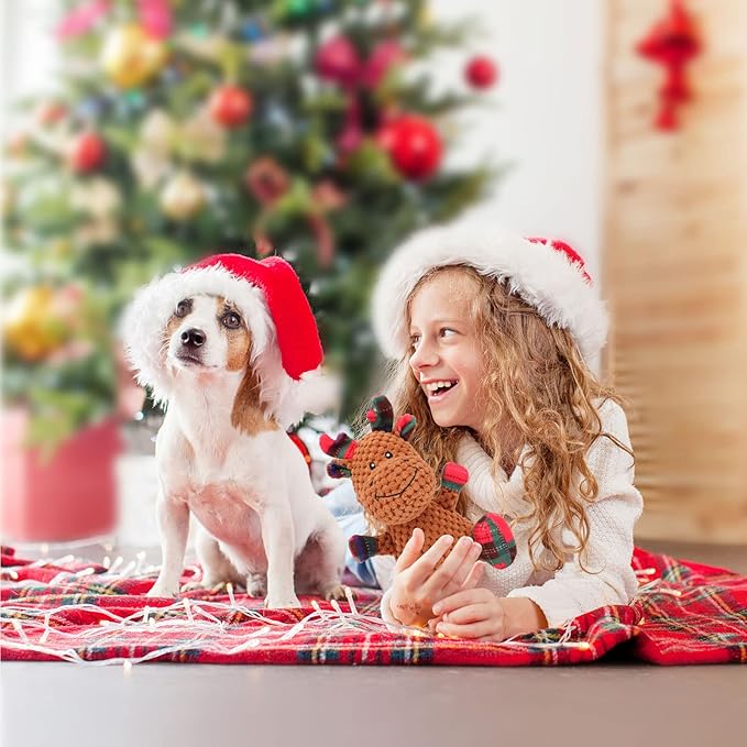 Rypet Pet Christmas Toy Dog Stuffed Squeaky Toys Puppy Durable Plush Toy Reindeer Dog Toys for Medium Small Dogs