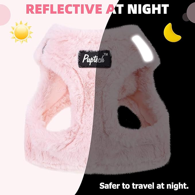 PUPTECK Adjustable Dog Harness Collar and Leash Set Step in No Pull Pet Harness for Small Medium Dogs Puppy and Cats Outdoor Walking Running, Soft Mesh Padded Reflective Vest Harnesses, Plush Pink M
