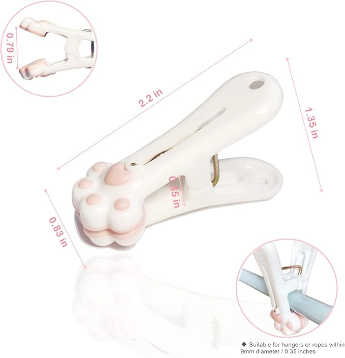 - ღ DELICATE DESIGN: Clothespins designed in Japanese style, cute cat claw pattern with smooth surface, non-slip soft thermoplastic elastomer (TPE) and tail hanging hole, which shall be traceless, applicable and more friendly to your clothes.