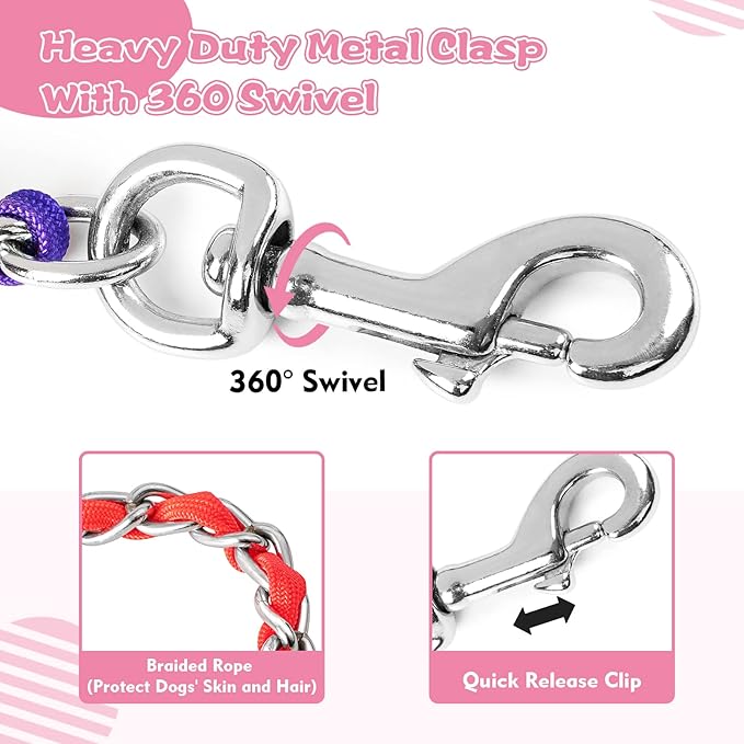 - Tangle-Free Swivel Clasp: Heavy-duty 360° swivel metal clasp with quick-release buckle. Provides smooth movement, prevents leash twisting, and gives your dog more freedom. Safety-coated design protects fur and hands from pinching or scratches