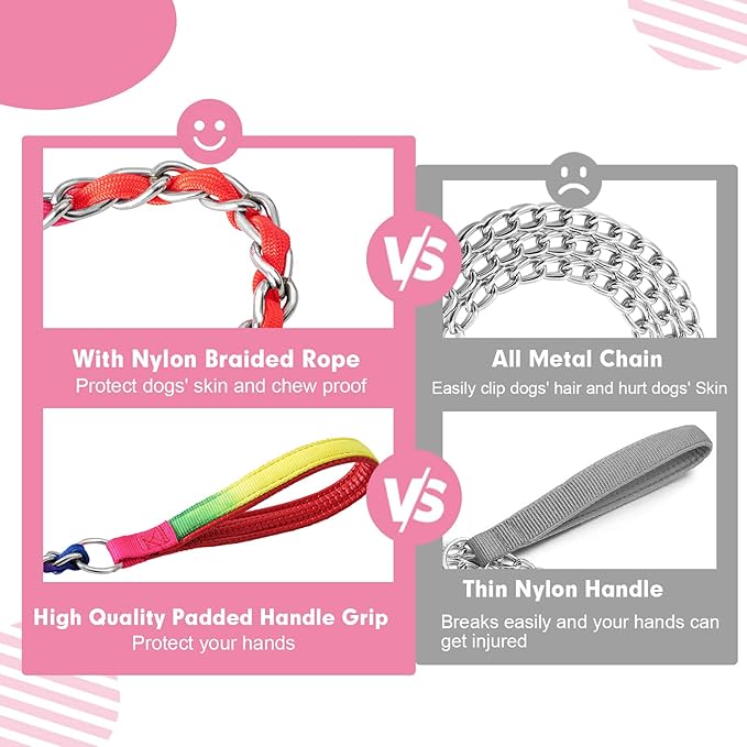- Versatile Sizing & Secure Control: Choose 4ft (3.0mm chain) for small/medium dogs or 6ft (3.5mm chain) for medium/large breeds. Beyond standard holding, securely wrap excess chain around your arm for extra control when needed