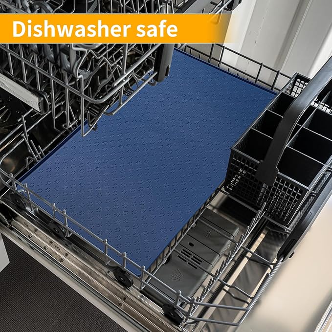 Ptlom Silicone Pet Placemat for Dog and Cat, Waterproof Non-Slip Pet Feeding Bowl Mats for Food and Water, Small Medium Large Tray Mat Prevent Residues from Spilling to Floor, Navy Blue, 18" 12"