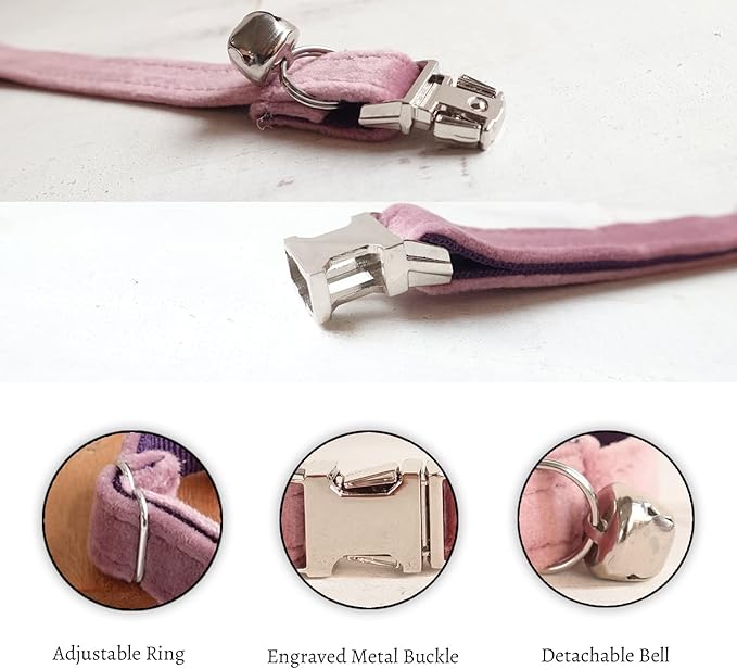 - Soft Comfortable Velvet: Made of Velvet and webbing fiber, with adjustable ring and detachable bell, durable and comfort for your pet. The metal buckle is easy to be fastened tightly and unfastened quickly.