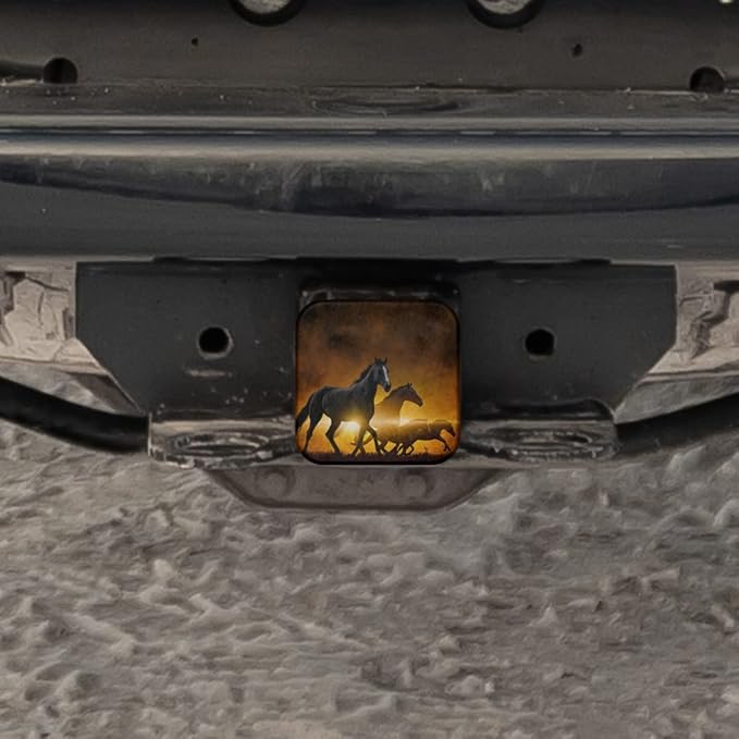 Swono Horses Car Rear Hitch Covers Running Horses Red Glowing Clouds Sunset Hitch Cover Protects Your Trailer Hitch Receiver from Dirt, Water and Rust, Hitch Tube Covers 2"X2"