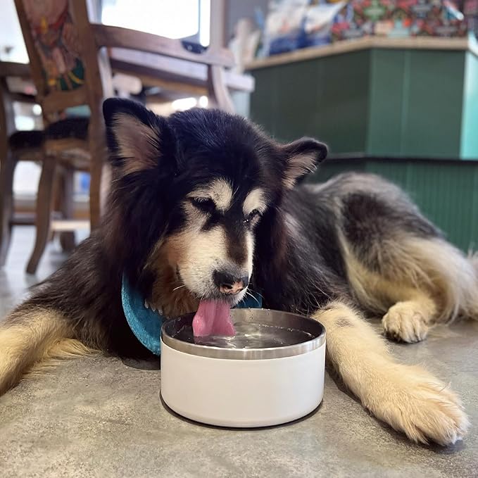 IKITCHEN Dog Bowl for Food and Water, 40 Oz Stainless Steel Pet Feeding Bowl, Durable Non-Skid Double Wall Insulated Heavy Duty with Rubber Bottom for Medium Large Dogs (40 Ounces/5 Cup, White)