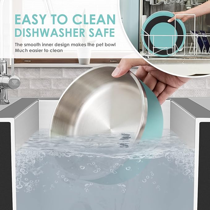 - SAFETY DESIGN-Pet feeding bowl adopts mirror polishing process, which has an elegant look and smooth touch. The flat edges will not hurt the dog's tongue, rust-proof and easy to clean.