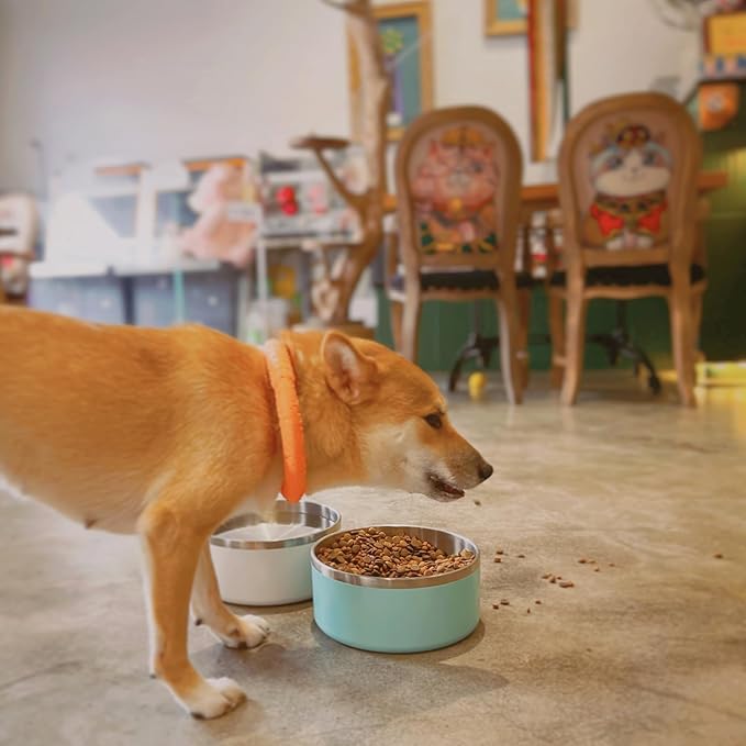 IKITCHEN Dog Bowl for Food and Water, 64 Oz Stainless Steel Pet Feeding Bowl, Durable Non-Skid Double Wall Insulated Heavy Duty with Rubber Bottom for Medium Large Dogs (64 Ounces/8 Cup, MintGreen)