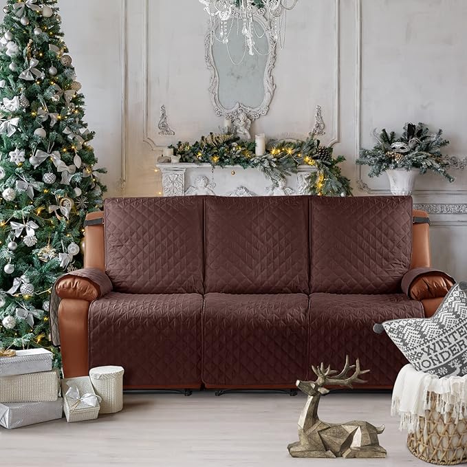Ruaozz Waterproof Recliner Sofa Cover 1-Piece Couch Covers for Reclining Couches Reclining Sofa Cover Washable Furniture Protector with Elastic Straps Pocket for Kids, Pets (Coffee, 3 Seater)