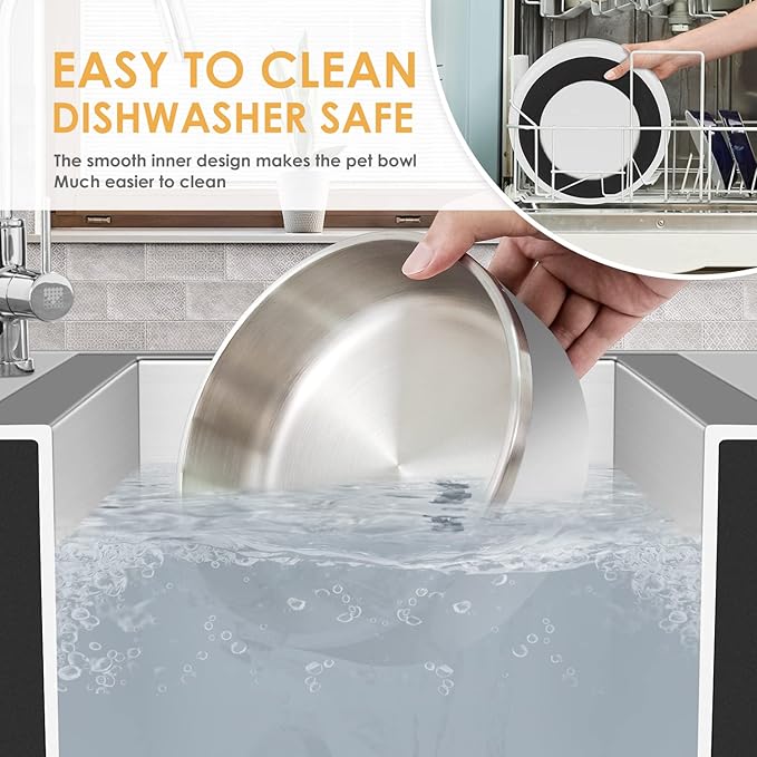 - SAFETY DESIGN-Pet feeding bowl adopts mirror polishing process, which has an elegant look and smooth touch. The flat edges will not hurt the dog's tongue, rust-proof and easy to clean.