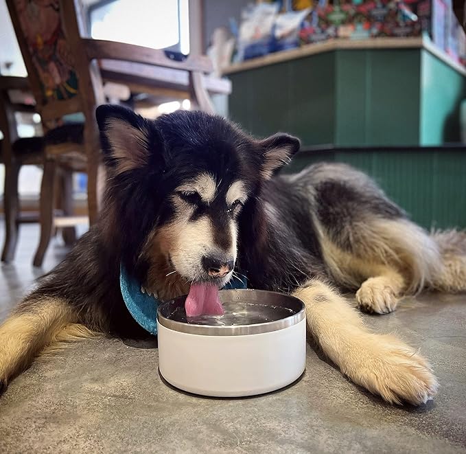 IKITCHEN Dog Bowl for Food and Water, 64 Oz Stainless Steel Pet Feeding Bowl, Durable Non-Skid Double Wall Insulated Heavy Duty with Rubber Bottom for Medium Large Dogs (64 Ounces/8 Cup, White)