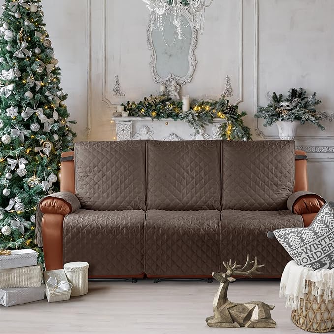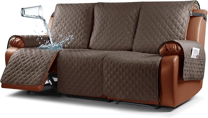 Ruaozz Waterproof Recliner Sofa Cover 1-Piece Couch Covers for Reclining Couches Reclining Sofa Cover Washable Furniture Protector with Elastic Straps Pocket for Kids, Pets (Brown, 3 Seater)