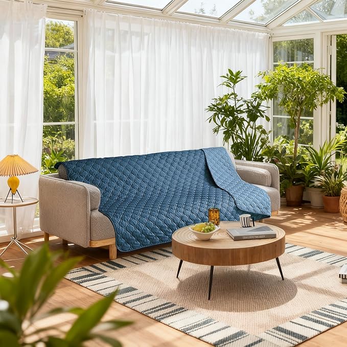 gogobunny 100% Double-Sided Waterproof Dog Bed Cover Pet Blanket Sofa Couch Furniture Protector for Puppy Large Dog Cat, Reversible (82x120 Inch (Pack of 1), Dark Blue/Light Blue)