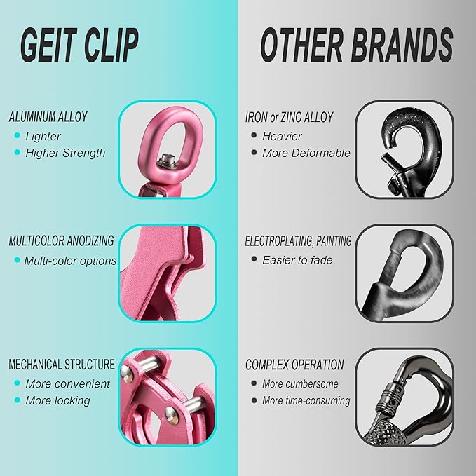 - 【Automatic Closing Frog Clip】- The buckle is made of aluminum alloy, anodic oxidation process is adopted, strong and durable. Quick release and locking dog collar clip while holding tight under strong pull. The 360° swivel ring can prevent the belt from tangling.