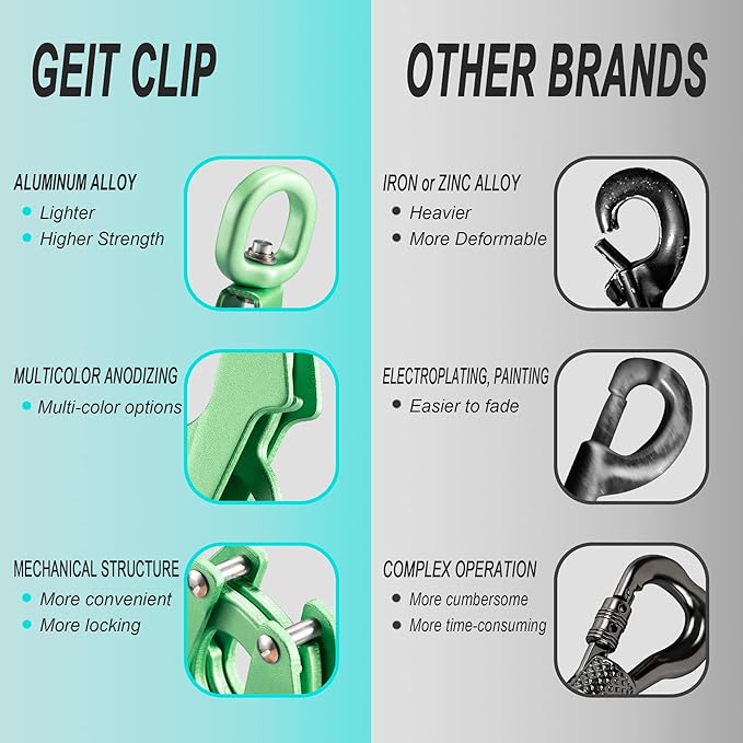 - 【Automatic Closing Frog Clip】- The buckle is made of aluminum alloy, anodic oxidation process is adopted, strong and durable. Quick release and locking dog collar clip while holding tight under strong pull. The 360° swivel ring can prevent the belt from tangling.