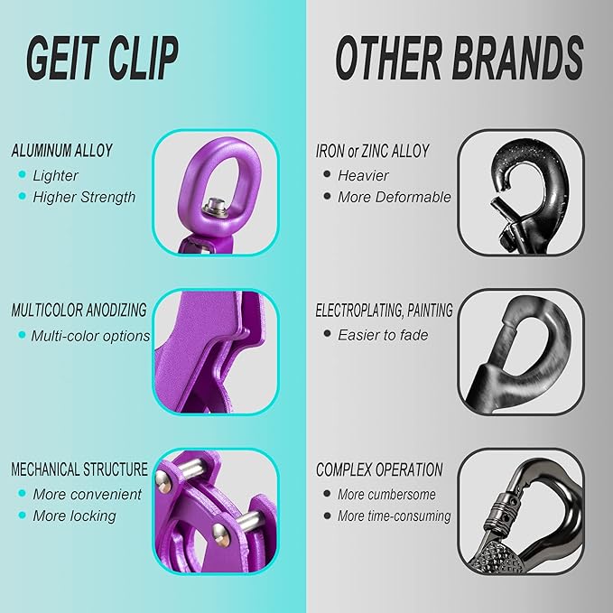 - 【Automatic Closing Frog Clip】 - The buckle is made of aluminum alloy, anodic oxidation process is adopted, strong and durable. Quick release and locking dog collar clip while holding tight under strong pull. The 360° swivel ring can prevent the belt from tangling.