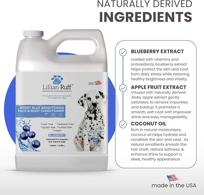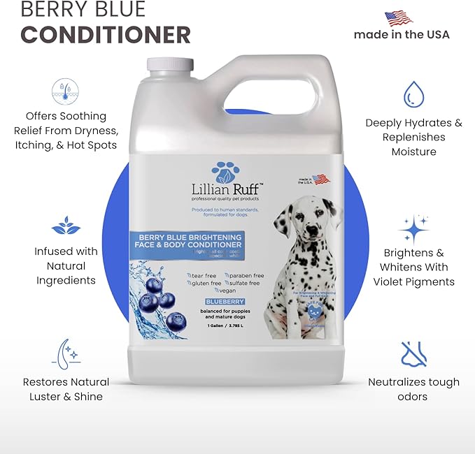 Lillian Ruff PRO Formula Berry Blue Brightening Dog Conditioner - Professional Whitening Conditioner, Hydrate Dry Skin, Soften, Detangle, Restore Shine - Provitamin B5, USA Made 128oz